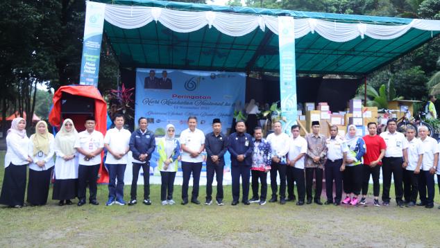 Merawang - Bupati Bangka, Mulkan SH., MH melepas peserta jalan santai dalam rangka memeriahkan HUT Kemerdekaan Republik Indonesia ke 77 Tahun 2022, di lapang bola Desa Balunijuk, Minggu (28/08/2022...