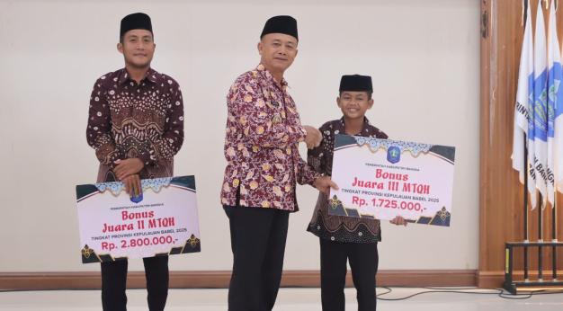 Sungailiat - Pemerintah Kabupaten Bangka memberikan bonus kepada kafilah Kabupaten Bangka yang telah berhasil menjuarai MTQH ke XIV tingkat provinsi...