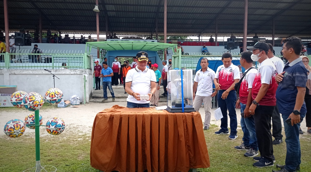 Sungailiat - Sebanyak 16 club kesebelasan siap berkompetisi di ajang Liga PSSI Bangka tingkat kabupaten tahun 2021/2022. Liga ini dibuka langsung oleh Bupati Bangka didampingi segenap Forum Komunikasi Pimpinan Daerah (Forkopimda) Kabupaten Bangka beserta jajarannya, Jum'at sore (27/05/22) di Lapangan Hijau Orom Sungailiat. Saat membuka kegiatan, Bupati Bangka, Mulkan, S.H., M.H., menuturkan, selain sebagai ajang olahraga yang kembali digiatkan, kegiatan ini sebagai bentuk wadah untuk memperebutkan piala utama serta sekaligus mempererat silaturahmi. "Inilah momen kita untuk meningkatkan silaturahmi," imbuhnya. Dikatakan Mulkan, para kesebelasan haruslah bermain sportif. Ia menegaskan bahwa panitia harus tegas dan tak segan untuk melakukan blacklist bagi kesebelasan yang anarkis. "Kita harus sportif dalam bermain, jangan sampai terjadi pekelahiian atau catatan hitam. Club akan kami diskualifikasi bagi yang tidak menjungjung sportifitas bermain," tegasnya. Untuk itu dirinya menyampaikan apresiasi kepada pihak-pihak yang terlibat dalam kesuksesan acara. "Kami mengucapkan ribuan terimakasih terutama kepada panitia pelaksana terhadap penyelenggaraan perebutan piala ini," pungkasnya. Pada kesempatan ini diisi pertandingan pembuka antara kesebelasan PS Bangka Setara berhadapan dengan PS Pemkot Pangkalpinang.