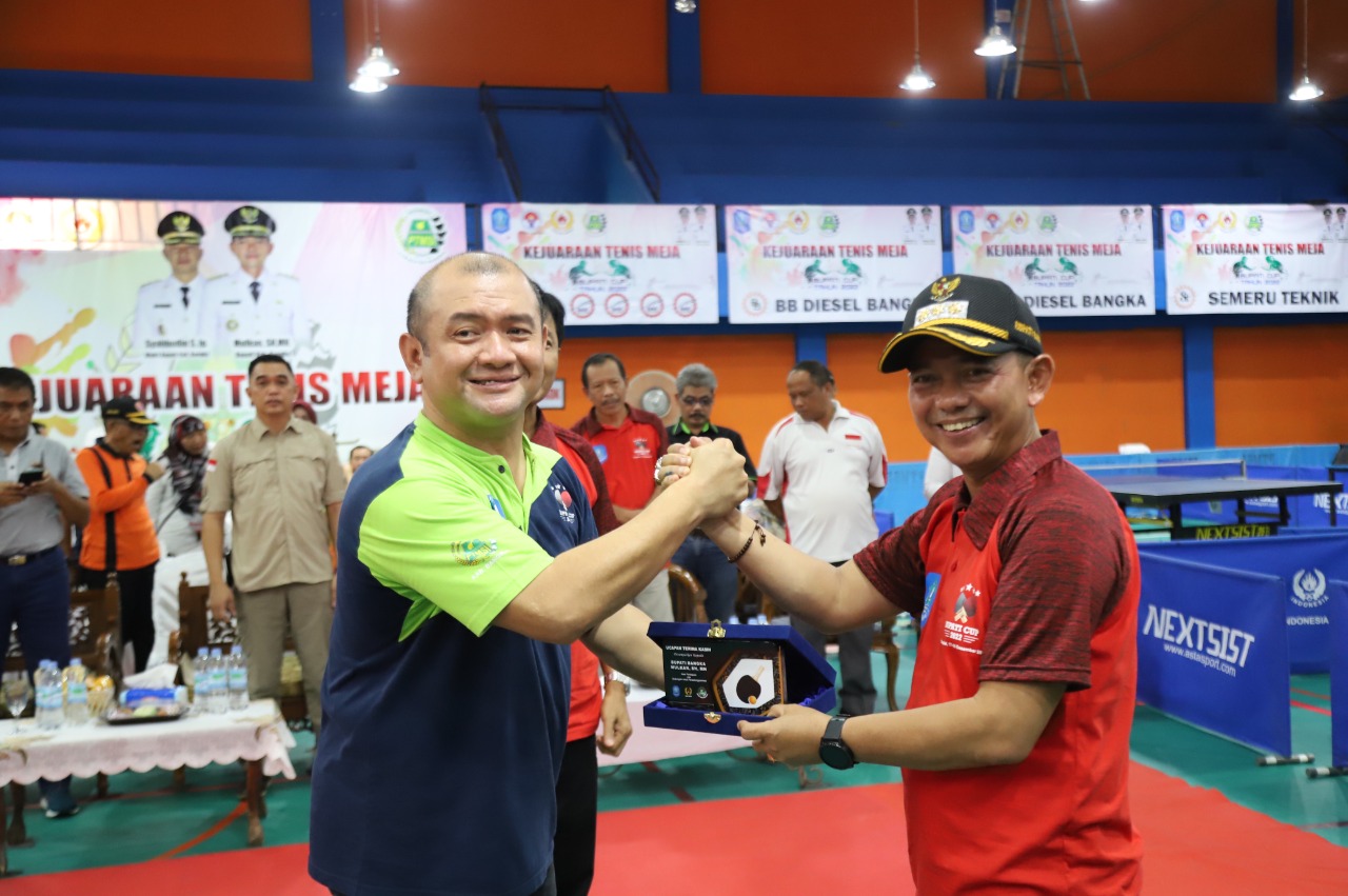 Sungailiat - Bupati Bangka Mulkan SH.,MH Secara Resmi Membuka Perlombaan Tenis Meja Bupati CUP Tahun 2022, bertempat di GOR Sang Depati Sungailiat, Sabtu (17/12/2022).