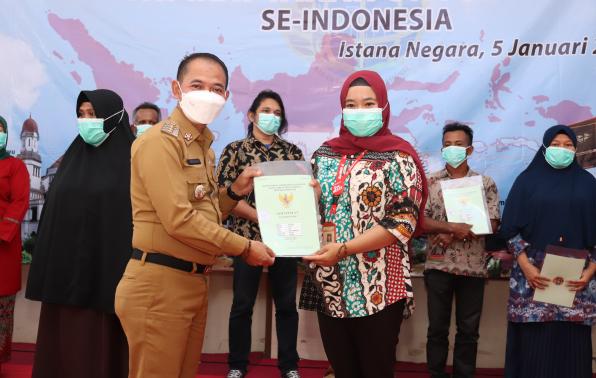 Sungailiat - Sebanyak empat ribu sertipikat tanah gratis program Pemerintah Pusat disalurkan kepada masyarakat Kabupaten Bangka, Selasa (5/1/2021). Sertipikat tersebut merupakan program tahun 2020 yang dilaksanakan Badan Pertanahan Nasional (BPN) Kabupaten Bangka.