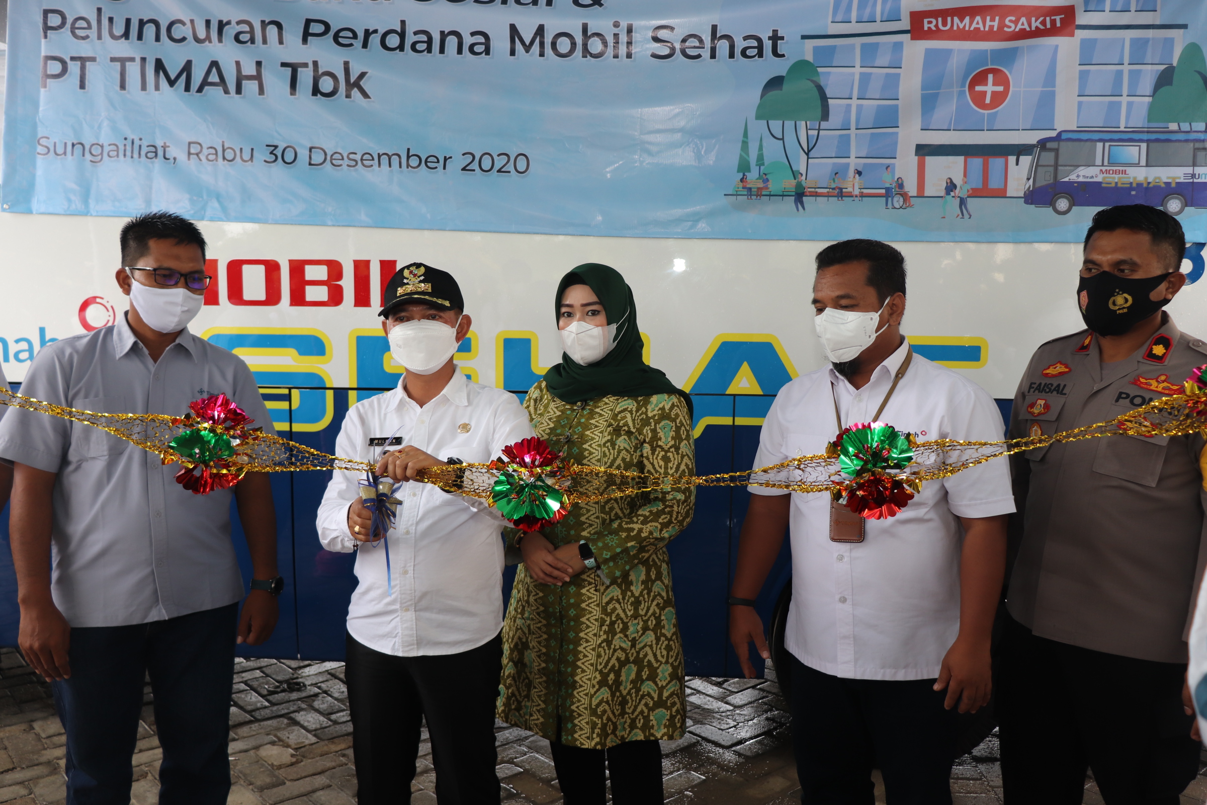 Sungailiat - Berlokasi di Rusuwa Asri Lingkungan 2 Sungailiat, Bupati Bangka bersama PT. Timah meresmikan 'Mobil Sehat', Rabu (30/12/2020). Mobil bis yang dilengkapi peralatan kesehatan tersebut bertujuan memberikan pelayanan kesehatan kepada masyarakat terutama di daerah yang sulit terjangkau.