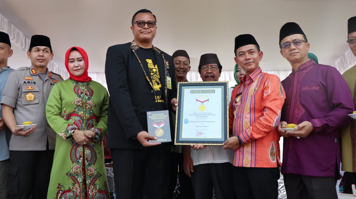 Prosesi penyerahan sertifikat MURI tersebut diterima langsung Bupati Bangka, Mulkan, SH, MH yang didampingi Ketua TP PKK, Yusmiati, Wakil Bupati (Wabup) Bangka, Syahbudin, SIP yang didampingi Wakil Ketua TP PKK Kabupaten Bangka, Almina.