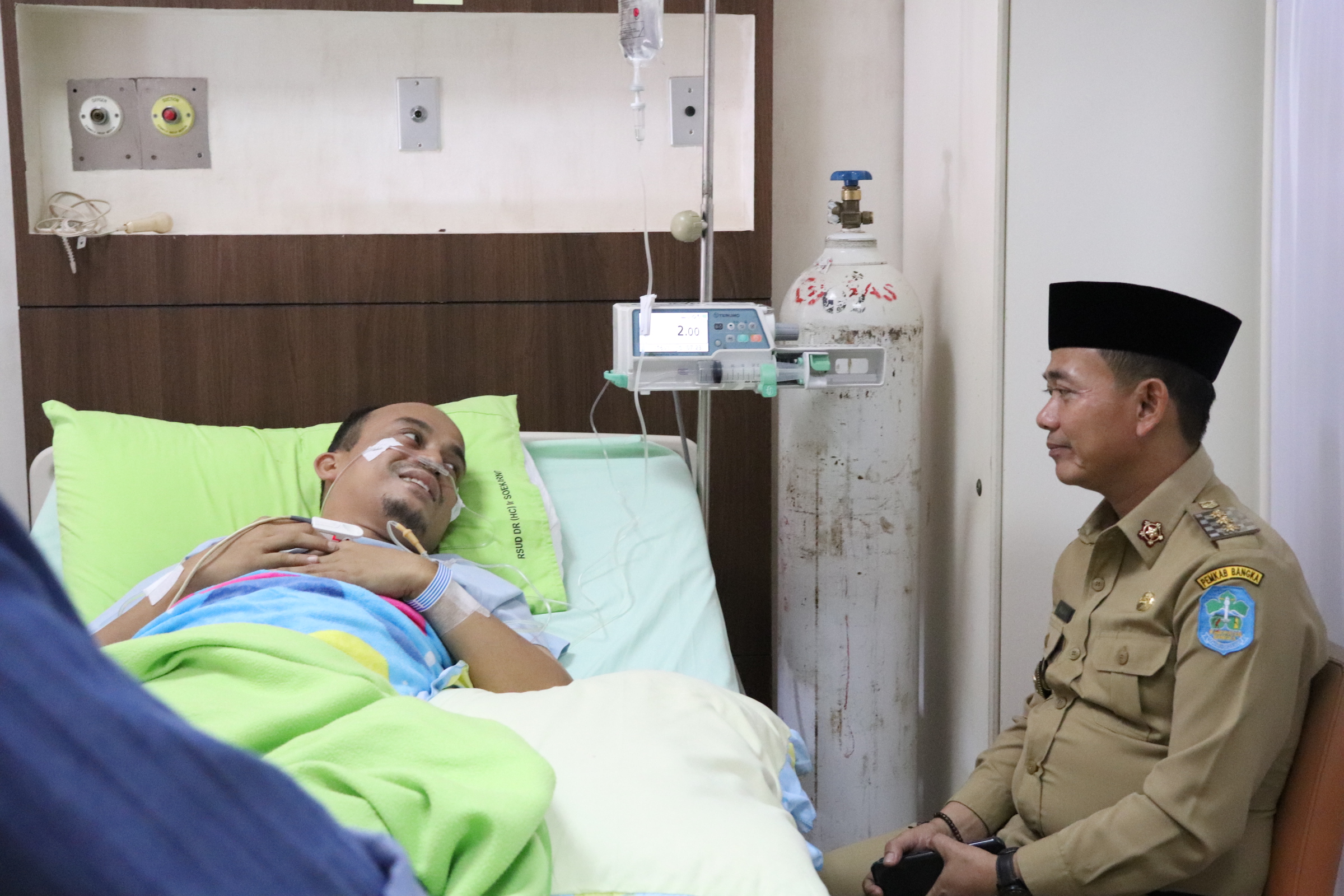 Merawang - Kepala Cabang (Kacab) Bank Rakyat Indonesia (BRI) Sungailiat, Ahmad Muflihin kini sedang menjalani perawatan intensif di Rumah Sakit Umum Daerah (RSUD) Provinsi Bangka Belitung Ir. Soekarno, Senin (27/1/2020). Mendapati kabar tersebut, Bupati Bangka Mulkan SH MH berinisiasi untuk mengunjungi rekan kerjanya tersebut.