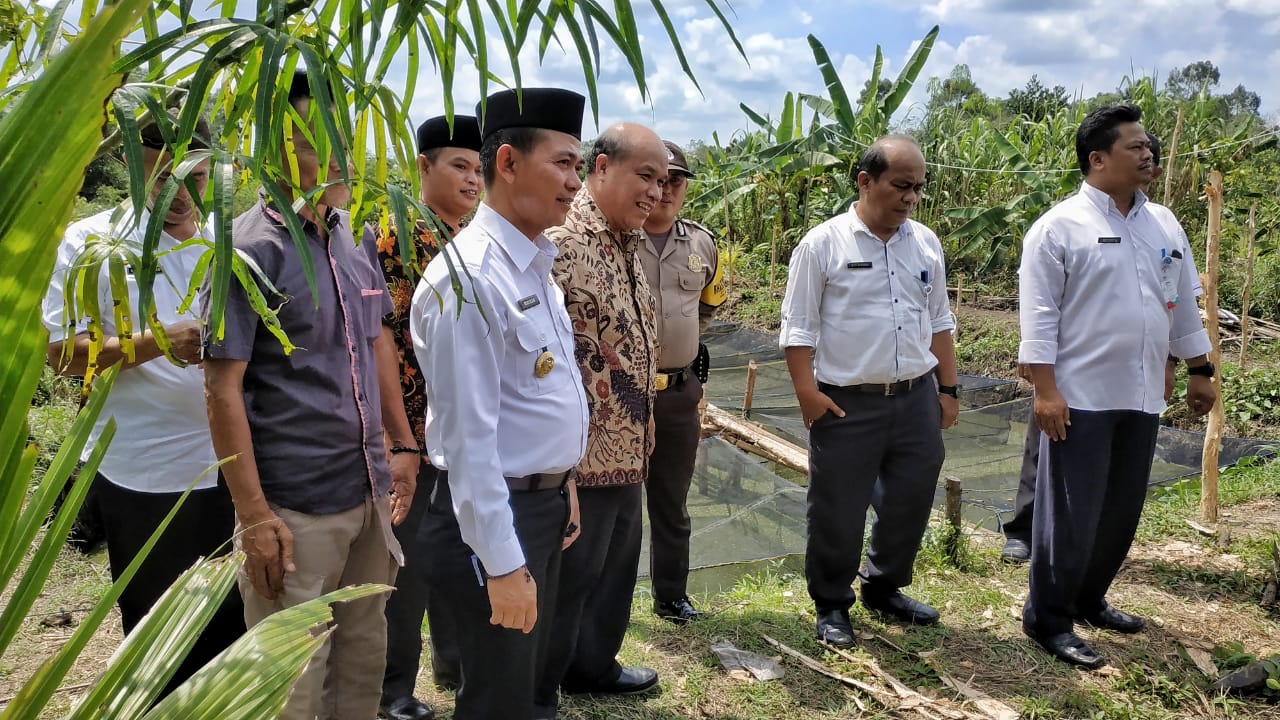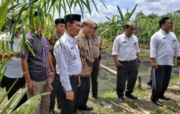MENDOBARAT - Bupati Bangka Mulkan SH MH bersama Kasubid sarana dan prasarana Kemendikbud RI Firdaus, Rabu (20/3) meninjau langsung lokasi lahan hibah dari salah satu warga Desa Kace, Kecamatan Mendo Barat, Kabupaten Bangka.