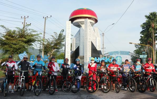 Sungailiat - Bupati Bangka didampingi Ketua TP PKK Kabupaten Bangka, Wakil Bupati (Wabup) dan Sekretaris Daerah (Sekda) Kabupaten Bangka melalukan kegiatan bersepeda bersama Kepala Bank Sumsel Babel cabang Sungailiat, Sabtu pagi (06/11/21).
