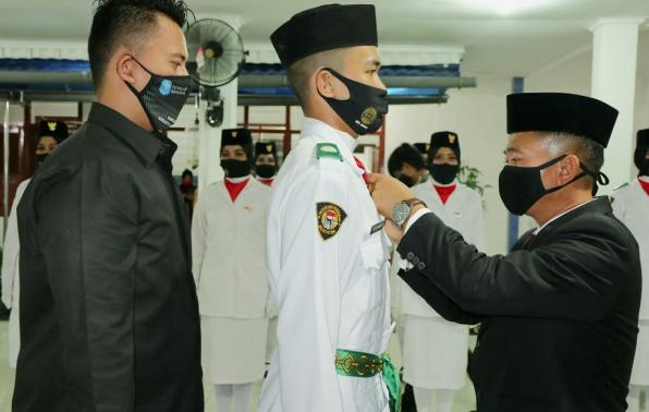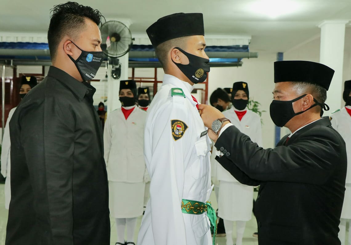 SUNGAILIAT - Bupati Bangka, Mulkan S.H.,M.H., mengukuhkan anggota Pasukan Pengibar Bendera Pusaka (Paskibraka) Kabupaten Bangka tahun 2020.