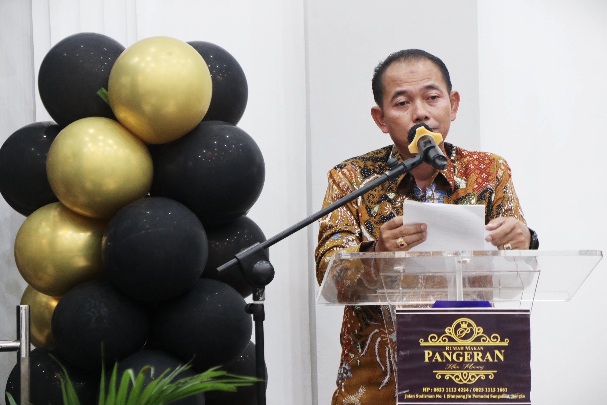 Sungailiat - Bupati Bangka, Mulkan SH MH, meresmikan rumah makan Pangeran yang terletak di jl. Jend. Sudirman Sungailiat, Rabu malam (03/02/2021).