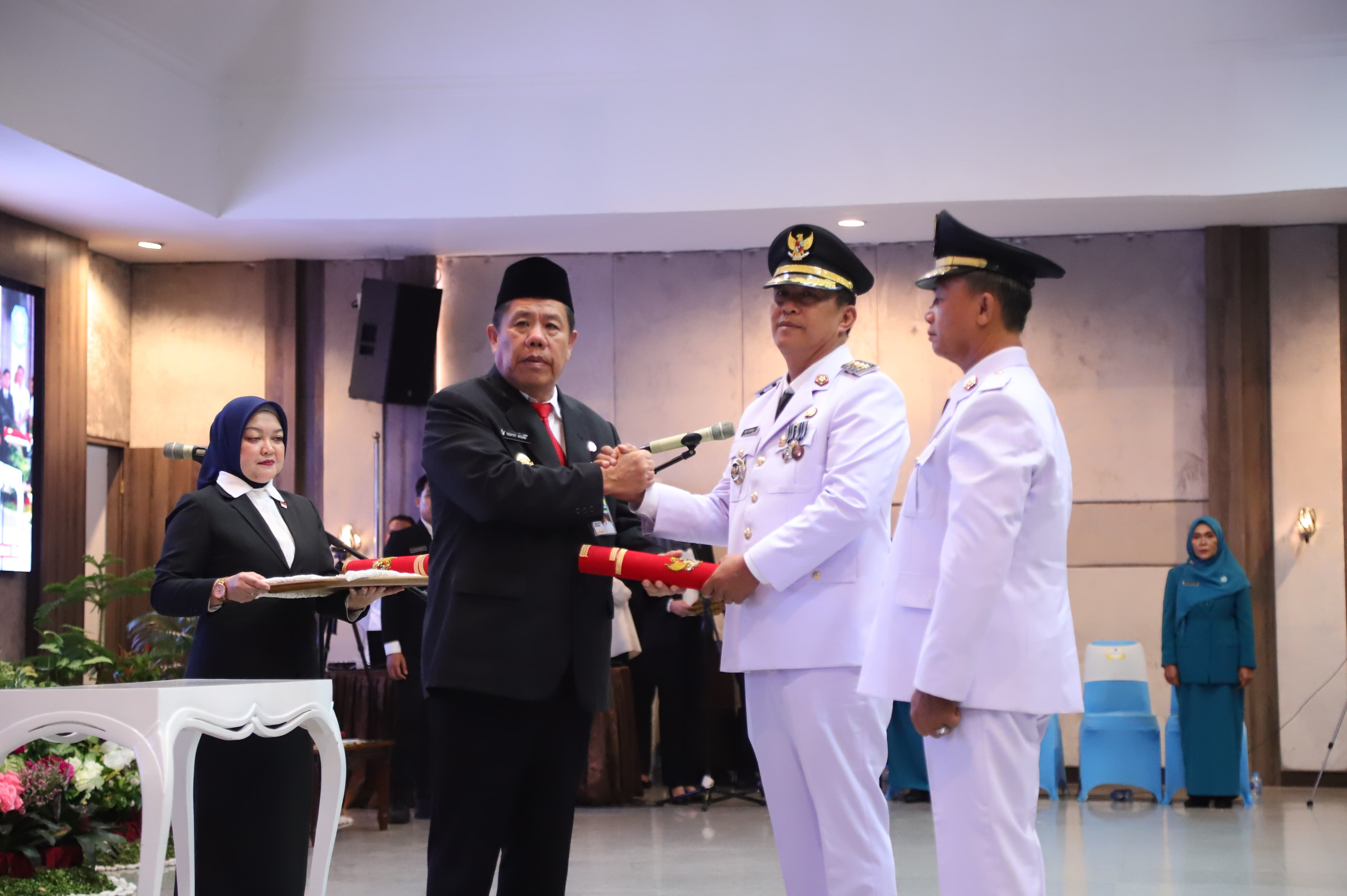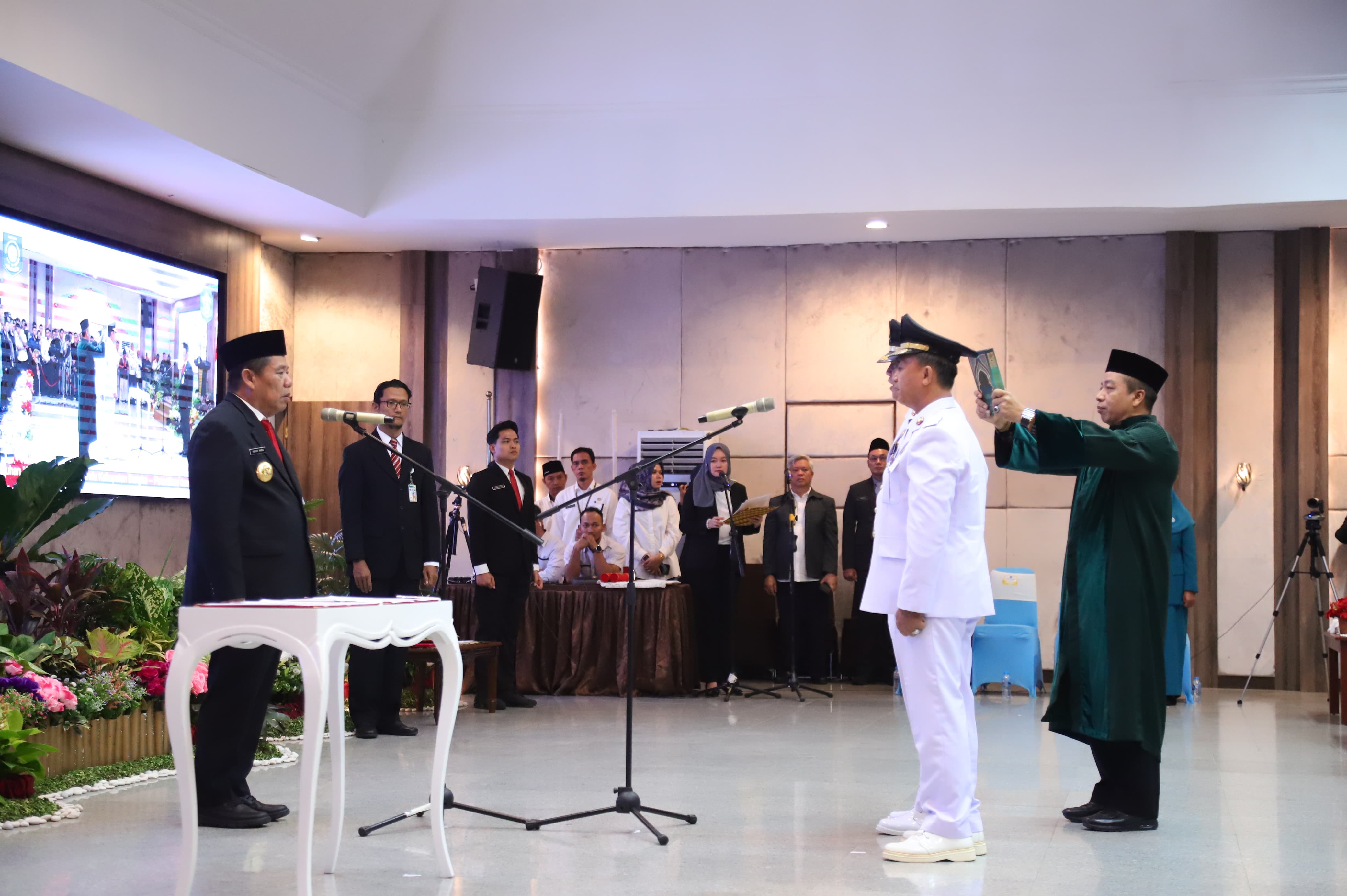 Prosesi diawali pembacaan Keputusan Menteri Dalam Negeri Republik Indonesia dan dilanjutkan pengambilan sumpah jabatan oleh Gubernur, yang dalam pernyataannya menekankan bahwa pelantikan ini bukan hanya momen administratif, tetapi titik awal tanggung jawab besar dalam menjawab amanah rakyat.
