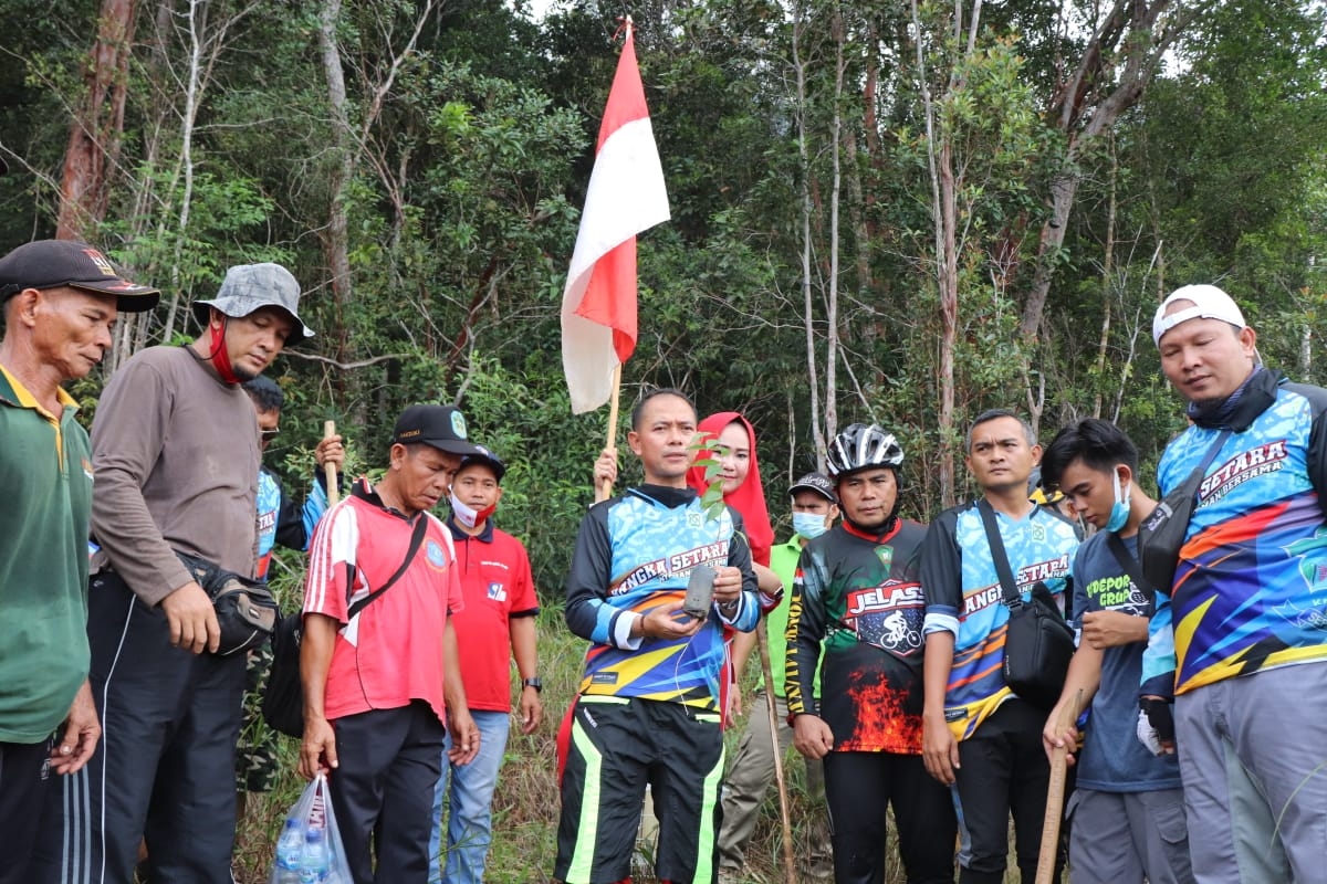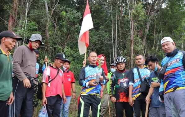 Bakam - Rombongan pesepeda dari berbagai komunitas yang terhimpun dalam 'Gowes Bangka Setara' melakukan perjalanan menuju Air Terjun Tingkat Tujuh di Desa Dalil Kecamatan Bakam, Sabtu (22/8/2020). Kegiatan tersebut juga disertai dengan penanaman pohon serta pelepas liaran burung lokal Bangka Belitung.