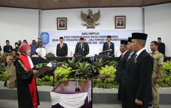 Sungailiat, bangka.go.id - DPRD Kabupaten Bangka baru saja menggelar prosesi pengucapan sumpah janji jabatan ketua DPRD Kabupaten Bangka definitif di Ruang Paripurna Gedung DPRD Bangka, Selasa (15/10/2019). Dalam pengambilan sumpah jabatan tersebut, Iskandar ditetapkan menjadi ketua DPRD Kabupaten Bangka setelah partai PDIP berhasil menjadi partai pemenang pemilu tahun 2019.