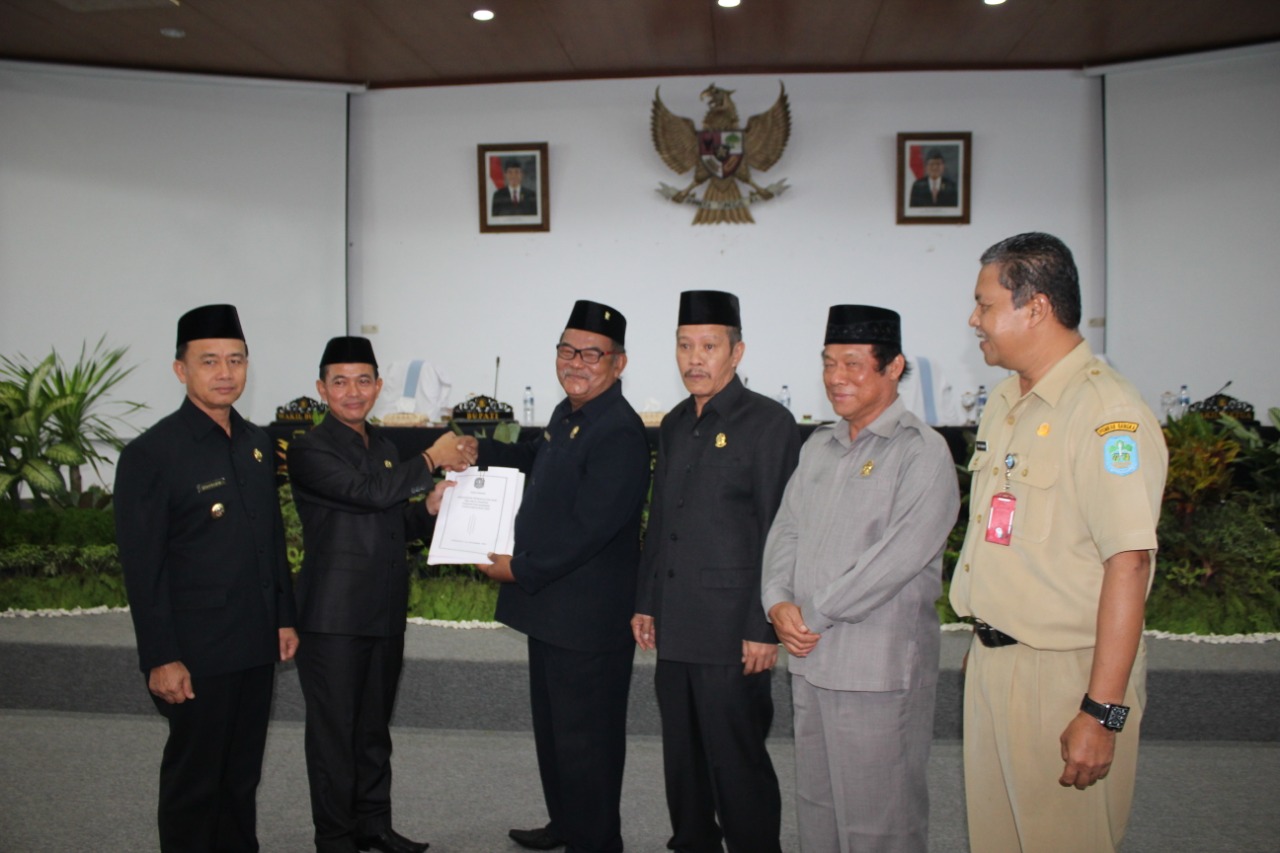 Sungailiat, bangka.go.id - DPRD Kabupaten Bangka menggelar Rapat Paripurna Penyerahan Rancangan Anggaran Pendapatan Belanja Daerah (RAPBD) Tahun Anggaran 2020. Penyerahan RAPBD dilakukan langsung oleh Bupati Bangka, Mulkan SH MH didampingi oleh wakilnya Syahbudin SIP pada Senin (2/9/2019) di Ruang Paripurna DPRD Bangka.