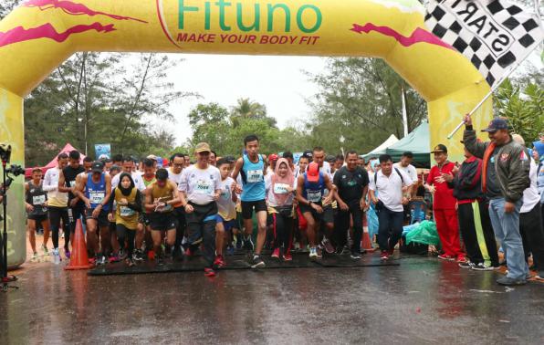 Setelah melepas ratusan peserta pada garis start di Pantai Tikus Emas, Bupati yang ikut di kategori 7.5K langsung masuk kedalam lintasan lomba.