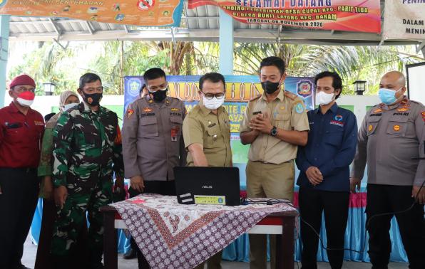 Bakam - Pemerintah Desa Bukit Layang Kecamatan Bakam meresmikan website desa di Balai Perteman Desa, Selasa (12/10/2021). Website tersebut terbentuk berkat kerjasama dengan Dinas Komunikasi Informasi dan Statistika (Dinkominfotik) Kabupaten Bangka.