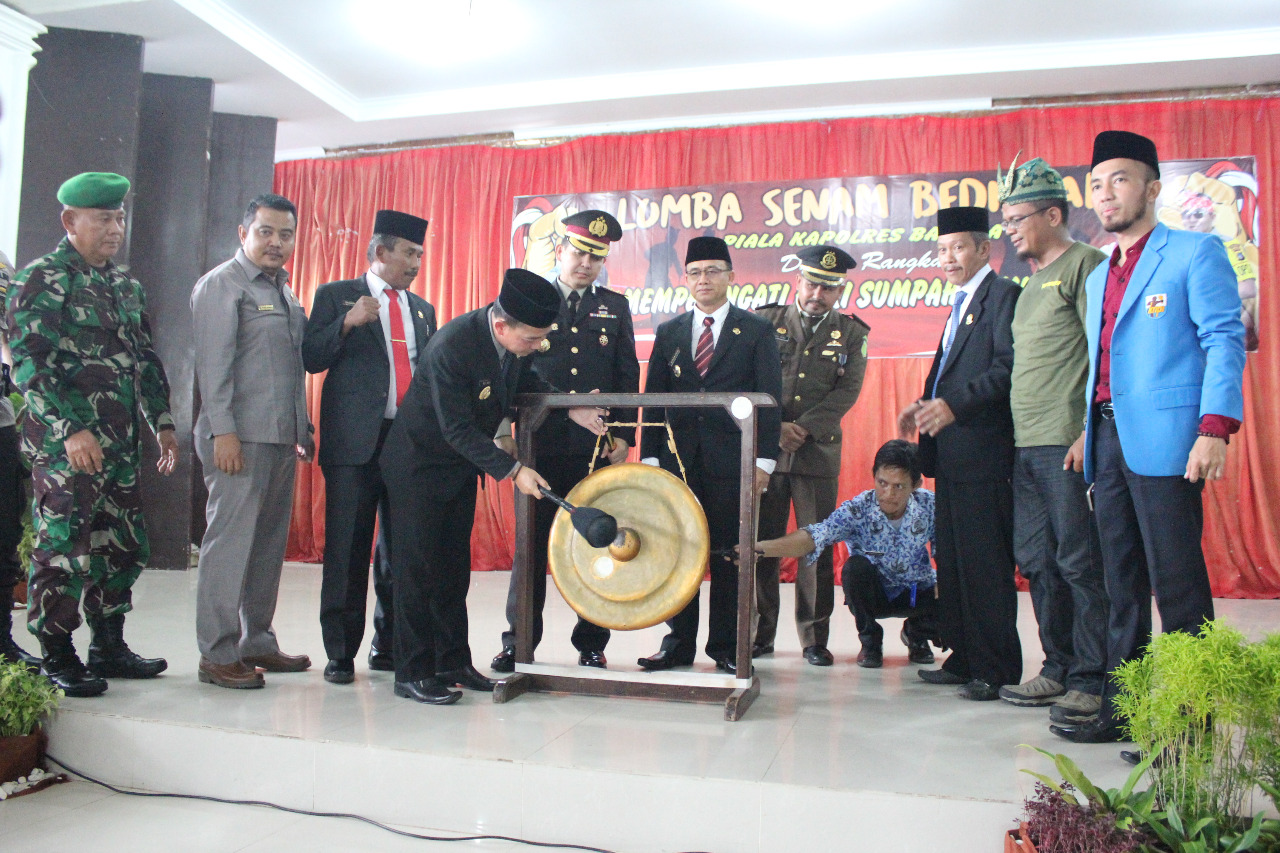 Sungailiat, bangka.go.id - Kepolisian Resor (Polres) Bangka bersama Pemerintah Kabupaten (Pemkab) Bangka menggelar perlombaan senam bedincak piala Kapolres Bangka sekaligus untuk memperingati Hari Sumpah Pemuda yang ke 91 Tahun, Senin (28/10/2019). Kegiatan tersebut dilaksanakan guna meningkatkan kepedulian masyarakat terhadap pelestarian budaya lokal Bangka Belitung.
