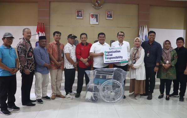 Sungailiat - PJ. Bupati Bangka M. Haris AR., AP., MH. menerima secara simbolis bantuan dari BPJS kesehatan berupa kursi roda untuk membantu para disabilitas yang ada di kabupaten bangka. Jumat (6/10/2023) bertempat di OR. Bangka Setara.