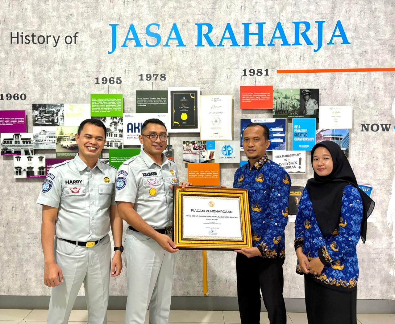 Penghargaan ini diberikan sebagai bentuk apresiasi atas komitmen dan kecepatan RSUD Depati Bahrin dalam proses penanganan serta penyelesaian klaim pasien korban kecelakaan lalu lintas yang dijamin oleh Jasa Raharja.