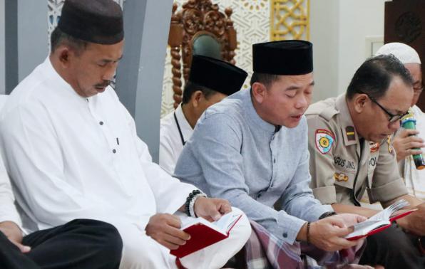 Sungailiat, bangka.go.id - Bupati dan Wakil Bupati Bangka beserta unsur Forum Komunikasi Pimpinan Daerah (Forkopimda) Kabupaten Bangka lainnya yakni Kapolres Bangka dan Ketua DPRD Kabupaten menggelar dzikir dan yasinan bersama masyarakat, Selasa (31/12/19) di Masjid Agung Sungailiat.