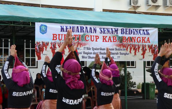 Sungailiat - Kejuaraan Senam Bedincak bertajuk Bupati Cup Tahun 2019 dibuka di Halaman Kantor Bupati Bangka, Sabtu (21/12/2019). Perlombaan tersebut merupakan upaya memperkenalkan sekaligus melestarikan budaya ataupun kreasi lokal daerah Bangka Belitung khususnya Kabupaten Bangka.