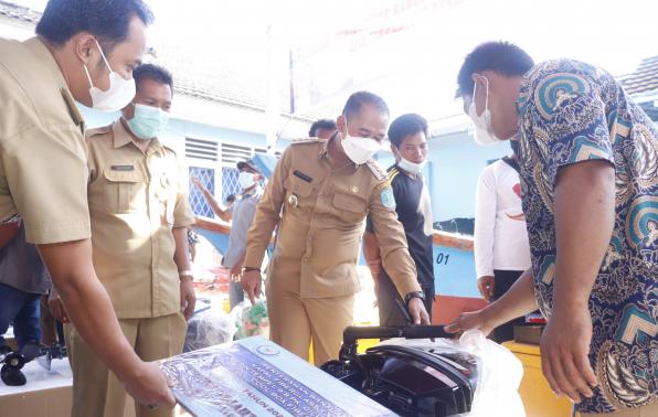 Sungailiat - Pemerintah Kabupaten Bangka menyerahkan lima unit kapal bagi kelompok nelayan yang berlangsung di Dinas Perikanan Kabupaten Bangka, Senin (22/11/2021). Bantuan tersebut diberikan guna meningkatkan kesejahteraan para nelayan khususnya di Kabupaten Bangka.