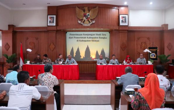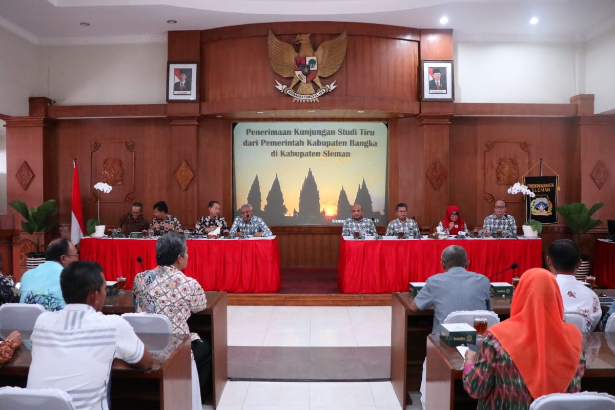Sleman, bangka.go.id - Dalam upaya meningkatkan percepatan pembangunan ekonomi serta tata kelola pemerintahan yang baik, Kabupaten Bangka melaksanakan kegiatan studi tiru ke Kabupaten Sleman, Yogyakarta pada Jum'at (11/10/2019). Kabupaten Sleman menjadi tempat tujuan karena dianggap telah berhasil dalam upaya pembangunan daerah terutama di sistem tata kelola pemerintahan.