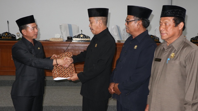 Sungailiat-Tujuh (7) usulan Raperda (rancangan Peraturan Daerah) yang disampaikan Bupati Bangka Mulkan disetujui Dewan Perwakilan Rakyat Daerah (DPRD) Kabupaten Bangka.