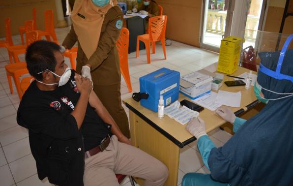 Sebanyak 1.260 orang telah terdata yang terdiri dari Pejabat Pemerintah Eselon 3, Lurah, POLRI, TNI, Pol PP, Petugas Lapas, Kemenag, Kejaksaan, Relawan BPBD, tokoh Agama, guru, wartawan dan petugas BPS. Vaksinasi ini akan dilakukan 2 kali penyuntikan dengan Alokasi vaksin untuk tahap ini sebanyak 280 vial.