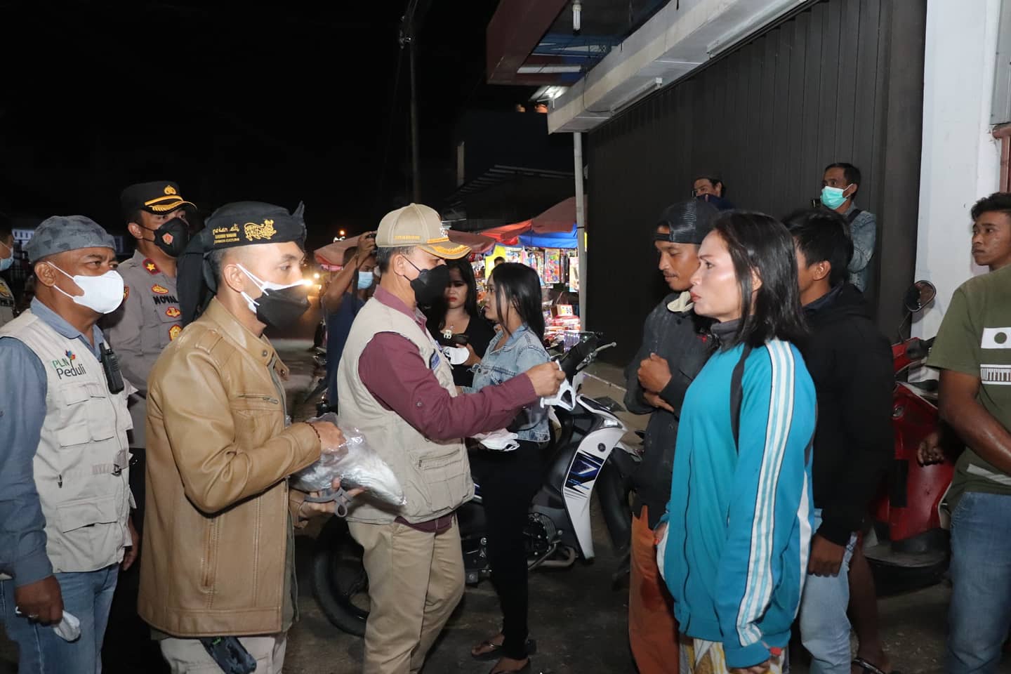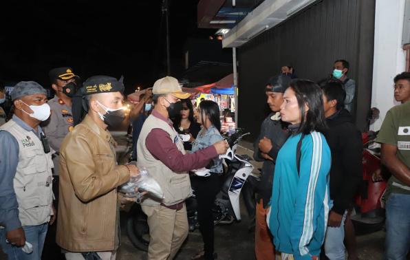 Belinyu - Wakil Bupati Bangka, Syahbudin SIP bersama pihak Kepolisian dan TNI melakukan operasi yustisi penegakan protokol kesehatan di areal pasar Belinyu, Rabu malam (14/7/2021). Operasi tersebut merupakan salah satu langkah pemeeintah dalam menekan masyarakat agar taat aturan protokol kesehatan.