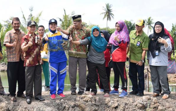 Wakil Bupati Bangka Syahbudin bersama Kepala dinas Perikanan kabupaten Bangka Ahmad Sapran, Dekan Fakultas Pertanian, Perikanan dan biologi UBB. Camat Merawang, Kepala desa Pagarawan melkukan panen Kepiting Bakau dan Nila Salim.(Pemkab Bangka)
