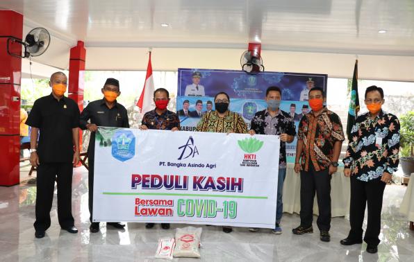 Sungailiat - Perusahaan tapioka Bangka Asindo Agri (PT. BAA) yang berlokasi di Kelurahan Kenanga Sungailiat meyerahkan bantuan bertahap sebanyak 5 ton barang kebutuhan pokok kepada Pemerintah Kabupaten Bangka, Kamis (30/4/2020). Bantuan tersebut ditujukan guna membantu masyarakat Kabupaten Bangka yang terdampak dari wabah covid-19.