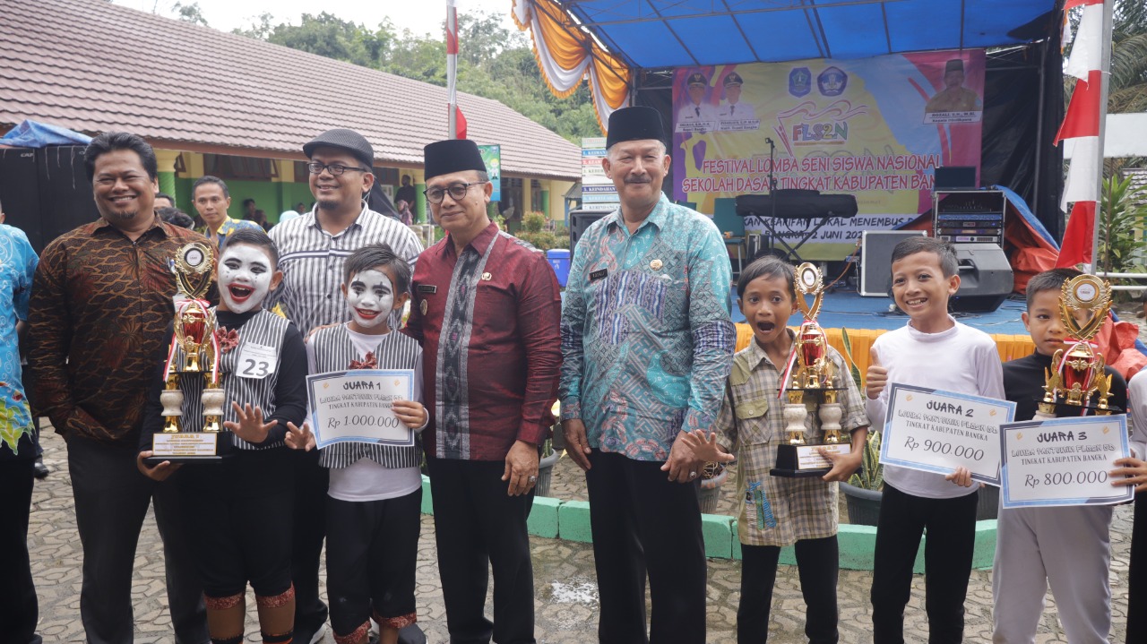 SUNGAILIAT - Kegiatan Festival Lomba Seni Siswa Nasional (FLS2N) tingkat Kabupaten Bangka, yang digelar di SD Negeri 1, Desa Bukit Layang, Kecamatan Bakam, Kamis (2/5/2022) hari ini, resmi ditutup. Penutupan kegiatan tersebut, dilakukan langsung oleh Wakil Bupati (Wabup) Bangka, Syahbudin.