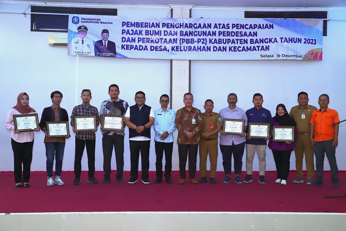 Sungailiat – Pemerintah Kabupaten Bangka memberikan bonus dan piagam penghargaan kepada wajib pajak dari sektor pedesaan, perkotaan, pengusaha, dan PBB yang diserahkan langsung oleh PJ. Bupati Bangka, Selasa (19/12/2023) di ball room hotel ST 12.